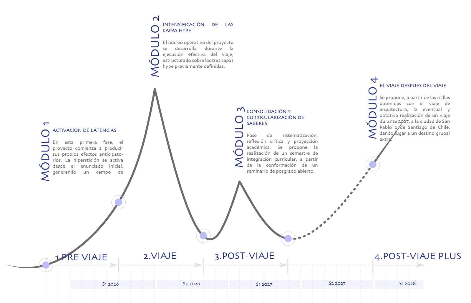 El proyecto académico se organiza en tres grandes módulos temporales, que estructuran la experiencia formativa como un continuo expandido: